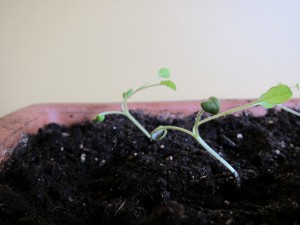 Towards the beginning of September I finally got the gumption to plant an indoor herb garden. I’ve been slowly (oh, so slowly) collecting the seeds and pots. The supplies weren’t the real hang up for finally planting the garden though. Since we moved into our house about a year and half ago, I’d been a bit stumped as to where I should put the herb garden. Sure we get plenty of light, Calgary after all is one of the sunniest cities in Canada. It was more that I had been greatly spoiled by our old apartment in B.C., which had wide windowsills that could happily accommodate potted plants. No such luck in our house though, and so each time I thought about getting out the bag of soil and seed packs, I had to face the “small” issue of where the pots would go once filled.